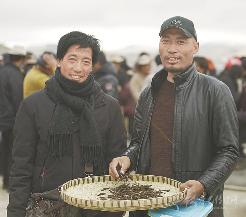 來自拉波鄉(xiāng)的商人曲珠他,在采集點的臨時交易點將斯郎單珍一家采集到的蟲草盡數(shù)收購,運(yùn)送至城區(qū)再次交易。5月5日,攝制組跟隨著這些“還沾著泥土的蟲草”,來到攝制組在理塘縣城東新區(qū)蟲草交易市場,拍攝記錄下2019年“頭草”的交易情況,并捕捉到了藏區(qū)特有的蟲草交易“袖筒議價”場面。