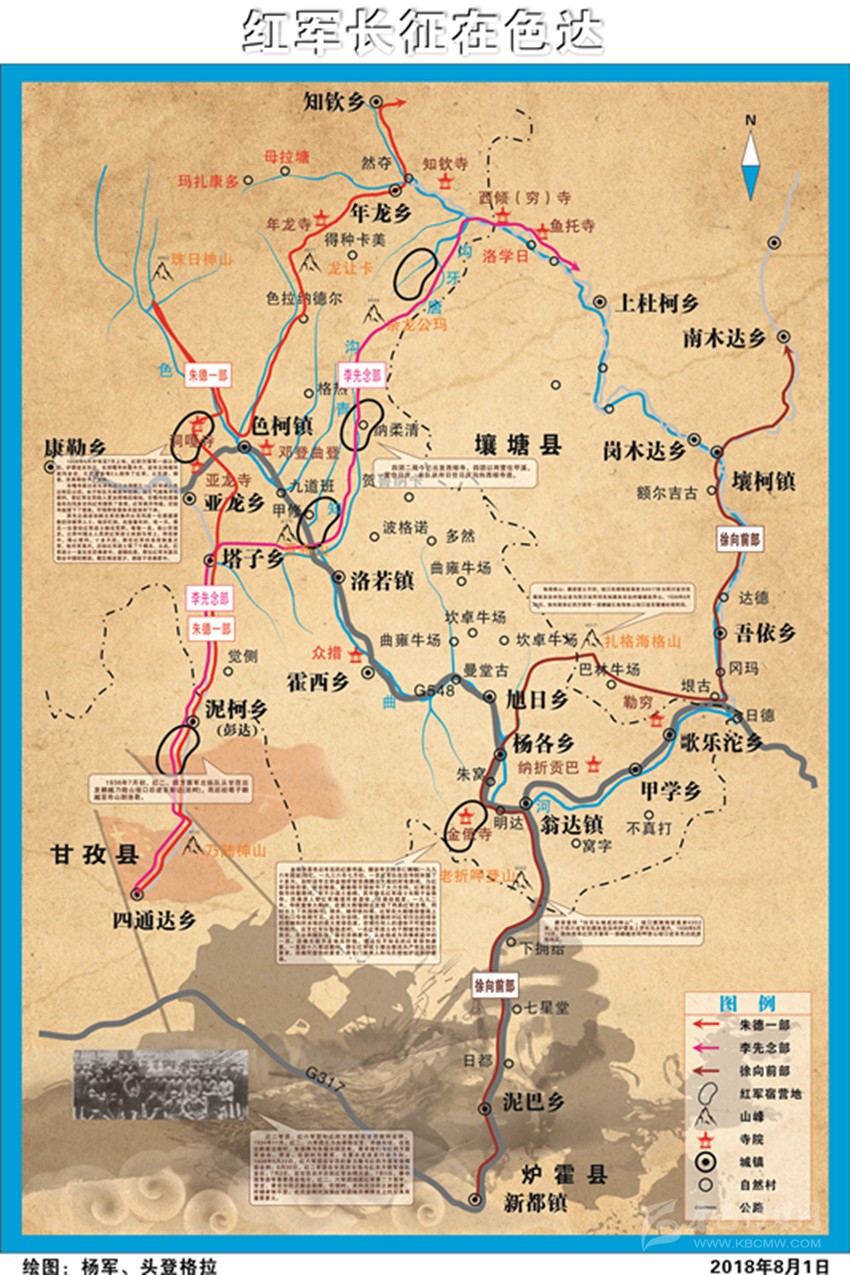 ●由賀之成率領(lǐng)的紅大、總供、總衛(wèi)生部從爐霍出發(fā),七月六日到達色達。
