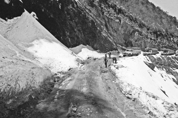 也就是在這一年,我們幾經(jīng)周折,終于聯(lián)系到了遠在北京的翟新莉女士。當年修筑二郞山公路時,翟女士的父親翟壽亭時任162團政委,既是指揮者,也是親歷者。聽過自我介紹,素未謀面、素昧平生的翟女士爽快答應(yīng),積極支持,不僅寄來《從豫皖蘇到康藏高原》一書,還發(fā)來了父親留下的一組珍貴照片。照片上,齊腰深的大雪讓人不寒而栗,四面透風(fēng)的工棚使人倍感覺艱辛。心懷敬仰的閱讀中,一座座大山撲面而來,二郞山、折多山、雀兒山上,戰(zhàn)天斗地的故事驚天地泣鬼神。