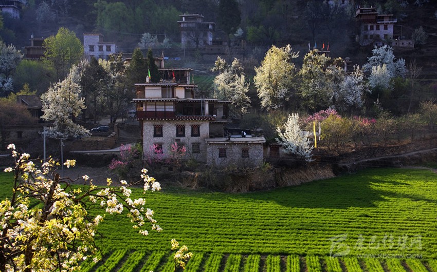 傳統(tǒng)的丹巴民居,一般由鍋莊房、經(jīng)堂、臥室、客廳、儲(chǔ)藏室等組成。此外,樓房部分還含有外廊、陽(yáng)臺(tái)、挑出的旱廁等,共同組成了功能齊全的房屋。在平面布置上,茶房占據(jù)著整個(gè)空間的重要位置,并以它為中心布局著其它房屋的布局。
