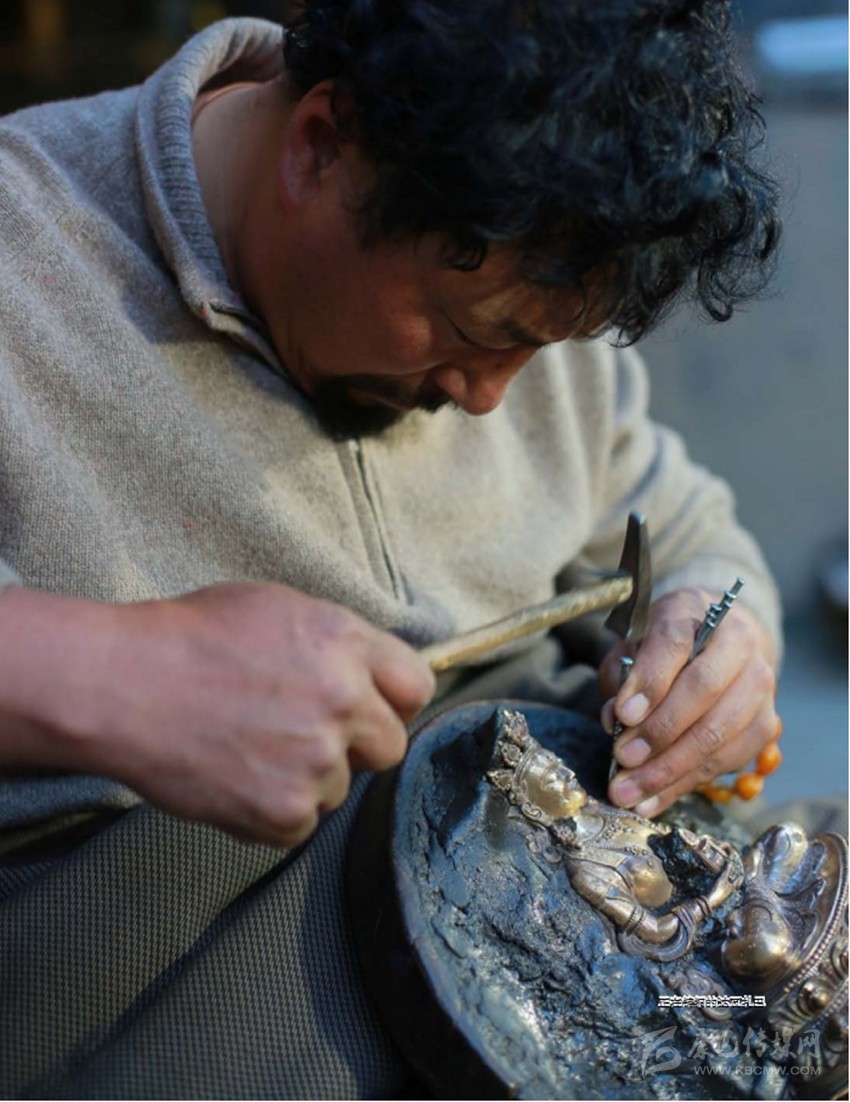 達(dá)瓦扎巴年輕、穩(wěn)重、活力,儼然一副小主人的模樣,用流利的漢語(yǔ)給我們介紹銅鑄技術(shù),也充當(dāng)我們和父親之間的翻譯。我們問(wèn)達(dá)瓦扎巴麥宿銅鑄佛像與其他地區(qū)的最大差別在哪里,他滿是自豪回答:我們的鎏金銅技術(shù),可以說(shuō)是獨(dú)家絕活,也是內(nèi)地近乎失傳的古法工藝。有故事為證:二十多年前,因?yàn)橹挥懈赣H一人會(huì)這門(mén)技術(shù),佛像產(chǎn)量很小。一位常年在印度做古董佛像投資生意的麥宿人回到老家,發(fā)現(xiàn)自己輾轉(zhuǎn)收來(lái)的“古董”竟然出自夏雷尼瑪之手。原來(lái)因?yàn)楣に嚬艠憔?,夏雷尼瑪制作的佛像被許多人冒充“古董”轉(zhuǎn)賣,竟然流到了印度。