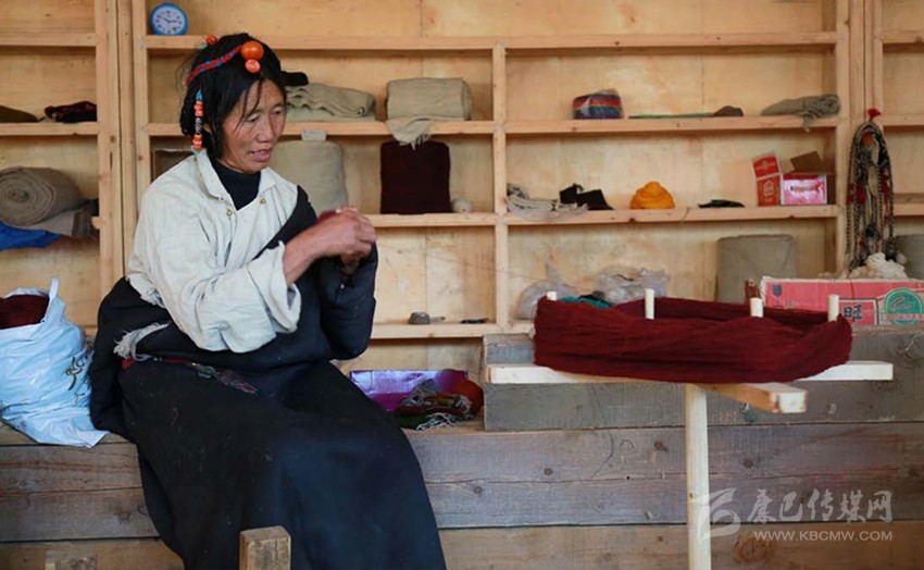 “庫(kù)”,這層細(xì)軟的底絨被表層粗糙的牦牛毛所覆蓋,且本身細(xì)長(zhǎng)彎曲,無(wú)法用剪刀方便地剪下,故而只能手工采集。從每年春天采集牦牛、羊絨,到捻成線,到染成不同顏色,再到織成一匹布,整個(gè)過(guò)程全由扎西巴姆和她帶領(lǐng)的幾個(gè)藏族婦女手工完成,全部學(xué)會(huì)這門(mén)技術(shù)需要3—4年,現(xiàn)在麥宿只有4人全部掌握。但與這費(fèi)力耗時(shí)的工藝形成殘酷對(duì)照的是,手工織物在機(jī)器快速生產(chǎn)的現(xiàn)代社會(huì),市場(chǎng)經(jīng)營(yíng)可謂舉步維艱。雖然工巧明系創(chuàng)立的平臺(tái)專門(mén)收購(gòu)編織班做出來(lái)的產(chǎn)品,但購(gòu)買的人并不多,編織班創(chuàng)建至今,所得收益只夠勉強(qiáng)維持平衡。