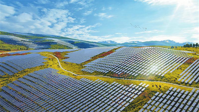 殷紅的落日映照在山邊,