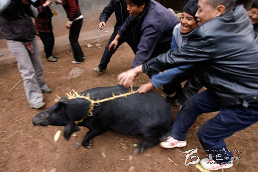 割豬蹄給娃娃們拿到山上玩。大人陪他們?nèi)计痼艋?,指揮他們將豬蹄不分你我地拋進(jìn)火中燒熟后,你一塊,我一坨地掏來(lái)吃,以養(yǎng)成團(tuán)結(jié)友愛(ài)的道德風(fēng)尚。