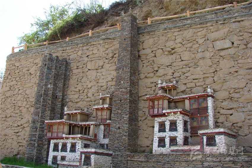 宋達(dá)村活動(dòng)場(chǎng)所是一個(gè)寬約二十米,長(zhǎng)約三十米的大壩,里面是高約十米的石砌圍墻,此時(shí)幾個(gè)工人正在忙碌著,幾座建筑模型已初見成形,最左邊是一座十三角碉的模型,一名工人坐在碉樓的樓頂上拿著手錘正奮力的敲打著眼前的石片,那石雕一半露在墻外,還有一半巧妙的鑲嵌在圍墻里。筆者走上前去,來到“碉樓”下,整座碉樓都是用灰色的石片砌成,每個(gè)石片間距一致,幾乎不見一點(diǎn)縫隙,充分展示了嘉絨人民高超的石砌技藝。十三角碉,顧名思義,就是整座碉樓由十三個(gè)角組成,在古時(shí)候是展示財(cái)富和地位的一種表現(xiàn)形式,砌墻的師傅非常健談,他告訴我,在嘉絨地區(qū),碉樓又以十三角碉最為罕見,據(jù)說,如今殘存的十三角碉全世界都只有三座,而其中保護(hù)得最為完整的尤數(shù)梭坡鄉(xiāng)普格頂村了,他頓了頓,伸出布滿青筋沾滿灰塵的手,往上指了指,自豪的說,它就在我們宋達(dá)村的山巔上,我不禁肅然起敬,為家鄉(xiāng)擁有這樣一座凝聚著嘉絨人民智慧結(jié)晶的古碉而激動(dòng)不已。在十三角碉旁,是一座典型的嘉絨藏房模型,共有五層,第一層為關(guān)牛羊的畜圈,石砌匠人巧妙的將一樓門洞和排水口合二為一,即增加了美感,也增加了科學(xué)性。第二層樓房有兩扇窗戶,是人們飲食起居的重要場(chǎng)所。第三層樓房上有三扇窗戶,是儲(chǔ)藏糧食、臘肉的地方。每一扇窗按照比例縮小制成,當(dāng)筆者問匠人為什么嘉絨藏房的門窗都如此矮小時(shí),他對(duì)此也娓娓道來。他告訴我,古時(shí)候嘉絨大地上混沌莫開、妖魔橫行,人們每天都在膽戰(zhàn)心驚中度過,那時(shí)候的房屋窗戶、門都修得異常的高大,夜幕降臨時(shí),這些妖魔就從窗戶、門洞里爬進(jìn)來,將熟睡的人擄走,后來嘉絨女王要求屬民們將窗戶和門洞改小,后來人們一直將此修建之法一直延續(xù)至今。第四層上是用木板、木頭作成的回廊,紅白相間,煞是美觀。第五層是堆放雜物的場(chǎng)所,石墻的每個(gè)角上都有石砌的尖角,如牛角一樣直指蒼穹,在尖角之間,有煨桑祈福的佛塔。再往右邊是一座四角碉的模型,由于只有四角,因此在修建中速度比十三角碉快了許多,那棱角愈發(fā)的鋒利。在嘉絨藏區(qū),這種碉樓是最常見的碉樓之一,碉樓藏語中稱為“邛籠”。早在2000年前《后漢書'西南夷傳》就有羌族人“依山居止,壘石為屋,高者至十余丈”的記載。碉樓多建于村寨住房旁,高度在1030米之間,用以御敵和貯存糧食柴草。碉樓有四角、六角、八角幾形式。碉樓一般建于沿河谷高山或半坡有耕地和水源的地方,結(jié)合地形,利用有限的平臺(tái),利用石頭筑成平頂。一般分成二層或三層,上層堆放糧食,中層住人,下層圈養(yǎng)牲畜,高二三丈,稱為邛籠;高的可有十三層,達(dá)十余丈,稱為碉。碉樓由專門的砌石匠修建,原料為亂石,用泥土粘合,不吊線,不繪圖,全憑經(jīng)驗(yàn),信手砌成。其壁面能達(dá)到光滑平整,不留縫隙,其堅(jiān)固程度則可在川西這個(gè)地震多發(fā)區(qū)聳立數(shù)十年甚至數(shù)百年,經(jīng)歷數(shù)次地震仍然巍然屹立,有的已偏倚卻不倒,有的彎曲為弓,自成風(fēng)景。它按照功能分為戰(zhàn)碉、家碉、寨碉等。再往右邊走,是一座低矮的樓房,它也是嘉絨藏區(qū)最為常見的藏房之一,雖然低矮,然而其中的雕樓畫棟美不勝收。據(jù)縣農(nóng)辦負(fù)責(zé)人介紹,宋達(dá)村地處普格頂山腳下,省道線從門前經(jīng)過,山頂山有著為名遐邇的十三角碉,民風(fēng)純樸,因此該村要突出物質(zhì)文化引領(lǐng)經(jīng)濟(jì)建設(shè)的發(fā)展,為此打造碉樓文化及藏族民居文化,吸引大批游客走進(jìn)村莊里,鼓勵(lì)村民自己建造有著嘉絨風(fēng)味的藏族民居,實(shí)現(xiàn)生產(chǎn)發(fā)展,這是新農(nóng)村建設(shè)的中心環(huán)節(jié),是實(shí)現(xiàn)其他目標(biāo)的物質(zhì)基礎(chǔ),也是我們打造宋達(dá)村新農(nóng)村建設(shè)所思考的問題,我們也逐步在實(shí)現(xiàn)這目標(biāo)。