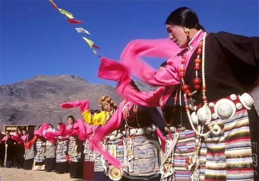 新龍鍋莊享譽(yù)藏區(qū),被譽(yù)為中國(guó)鍋莊之鄉(xiāng)。新龍鍋莊獨(dú)樹一幟,風(fēng)格與其他藏區(qū)的鍋莊迥異。新龍鍋莊據(jù)說(shuō)是在格薩爾時(shí)代,有一位會(huì)唱山歌的商人,名叫阿俄絨布,他游走經(jīng)商各地。每到一個(gè)地方,阿俄絨布總是一邊經(jīng)商,一邊唱著山歌。他來(lái)到新龍以后,就獨(dú)創(chuàng)了一種舞蹈,并傳授給當(dāng)?shù)厝耍@種舞蹈很快在新龍地區(qū)流行起來(lái)。由于新龍與世隔絕,這種舞蹈沒有外傳,發(fā)展成為現(xiàn)在的“新龍鍋莊”。