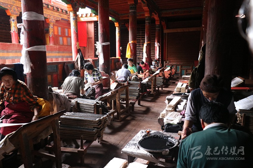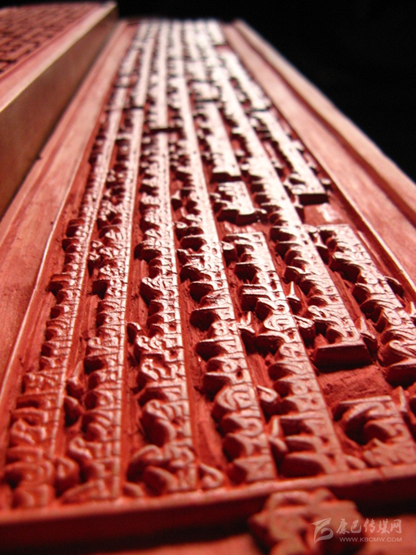 公元1730年2月3日,正式在倫珠頂開始進(jìn)行校對和雕刻工作。為了提高印版的質(zhì)量,土司規(guī)定實(shí)行三級(jí)審校制度,即書法家們負(fù)責(zé)對寫好的版文進(jìn)行兩校,以便及時(shí)修改錯(cuò)漏。然后經(jīng)編審師們復(fù)審和終審后,方可交刻工雕刻。刻完后,編審師們在清樣上還要進(jìn)行三校。版面改動(dòng)較多的進(jìn)行重刻,改動(dòng)較少的進(jìn)行補(bǔ)刻。規(guī)定的校次不準(zhǔn)任意減少或改動(dòng)。雕刻工作由噶瑪班珠和次白總負(fù)責(zé)。經(jīng)過60多名書寫員、10名編審師、400余名刻工以及100多名雜工的艱苦勞動(dòng),浩繁的《甘珠爾》刻版工程于在公元1734年完成。印版所用經(jīng)費(fèi),折成茶塊共計(jì)7622包(每包約20公斤)。