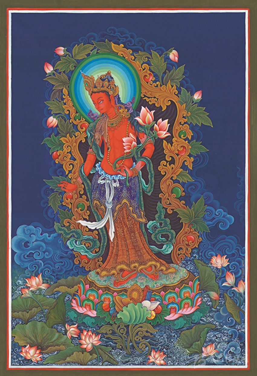 元朝以后,尼瓦爾唐卡慢慢淡出了中原,內(nèi)地民眾對(duì)這門優(yōu)秀的繪畫藝術(shù)也慢慢缺乏詳細(xì)認(rèn)知。而在今天,古老神秘的尼瓦爾唐卡在距離“工巧天”阿尼哥大師北京傳藝的八百年后,再次閃耀于我們的視野里。視覺只是一扇窗,但當(dāng)你在尼瓦爾唐卡前面開啟了這扇窗戶,您便開啟了眼耳鼻舌身意,于是視覺、聽覺、嗅覺、味覺、觸覺也就一起活躍起來了。讓我們好好享受尼瓦爾唐卡藝術(shù)帶來的精神盛宴吧!我相信其率真且極具生命活力的獨(dú)特美感必將深深地打動(dòng)尊貴的您!