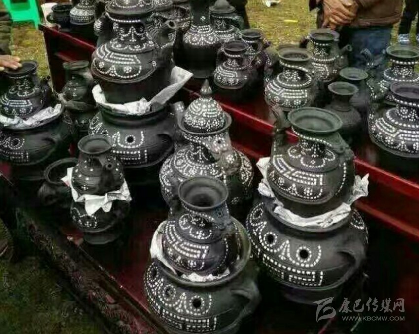 宗教佛事用陶具的制作和用途有明確規(guī)定,當(dāng)?shù)匕傩赵诿磕瓴貧v新年前夕均要制作佛事用具。以戶為單位,每戶3件,其明顯特點(diǎn)是顏色都有別于黑陶,多采用白色作陪襯。制作好的佛事陶具于藏歷新年初五送往寺廟,由寺廟高僧做法事,擇日,在太陽(yáng)出來(lái)前將陶具置于河中深水處,祈禱來(lái)年風(fēng)調(diào)雨順、人們幸福安康。