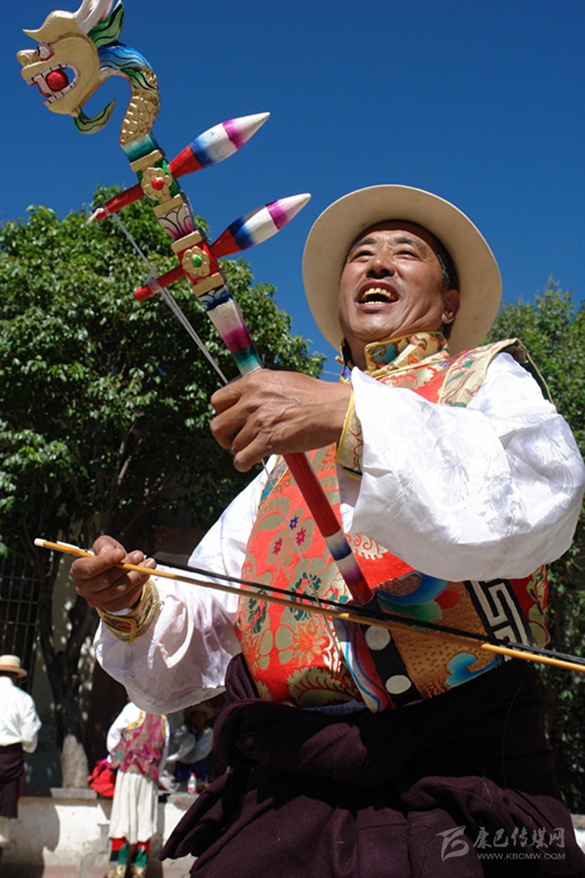 八歲時(shí),就從外婆那里學(xué)會(huì)了拉“胡幾”,拉得不好,鄰居們笑:“咿咿呀呀的,像驢子在叫”。人們?cè)谔镩g地角跳弦子時(shí),他夾在圈子里“臊堂子”調(diào)皮,后來便跟著大人跳,跳著跳著就學(xué)會(huì)了。有些動(dòng)作不標(biāo)準(zhǔn),外婆和母親就會(huì)笑著糾正。1972年,縣上的“毛澤東思想文藝宣傳隊(duì)”選中了剛滿十四歲的他,在“文革”中后期鋪天蓋地的運(yùn)動(dòng)中,他們上山下鄉(xiāng)進(jìn)軍營送文化,弦子舞技得到強(qiáng)化,藏二胡就是在這期間越拉越好的。那時(shí)候糧食還沒有過關(guān),公社分配的工分又重,家里的日子過得很艱難。經(jīng)常跟宣傳隊(duì)唱唱跳跳,可以不做那些繁重的農(nóng)活了,他還暗地里偷偷慶幸過。“文革”結(jié)束后,縣上成立了業(yè)余弦子隊(duì),他自然也在其中,這時(shí),他已經(jīng)能記住二百多首弦子詞曲了。西藏恢復(fù)雪頓節(jié)那年,應(yīng)該是1986年吧,他們又跳到了圣地拉薩,受到了西藏各地官員和群眾的歡迎??途永_的巴塘人在雪頓節(jié)盛典上看到巴塘弦子,流下了激動(dòng)的淚水,很多人過來跟他們“打招呼”,問候家鄉(xiāng)人。跳弦子五十多年,去拉薩應(yīng)該是最難忘的事情了。“阿幾拉沖!說拉薩道拉薩,拉薩建在海面上。”這是小時(shí)候外婆教他唱的。和所有的藏族一樣,他從小就向往那塊圣地。八十年代交通極其不方便,去成都都要走整整四天,去拉薩多難啊,所以村里人都很羨慕他們弦子隊(duì)。他還記得,在向布達(dá)拉宮虔身朝拜的那一刻,他流下了感動(dòng)和幸福的淚水。