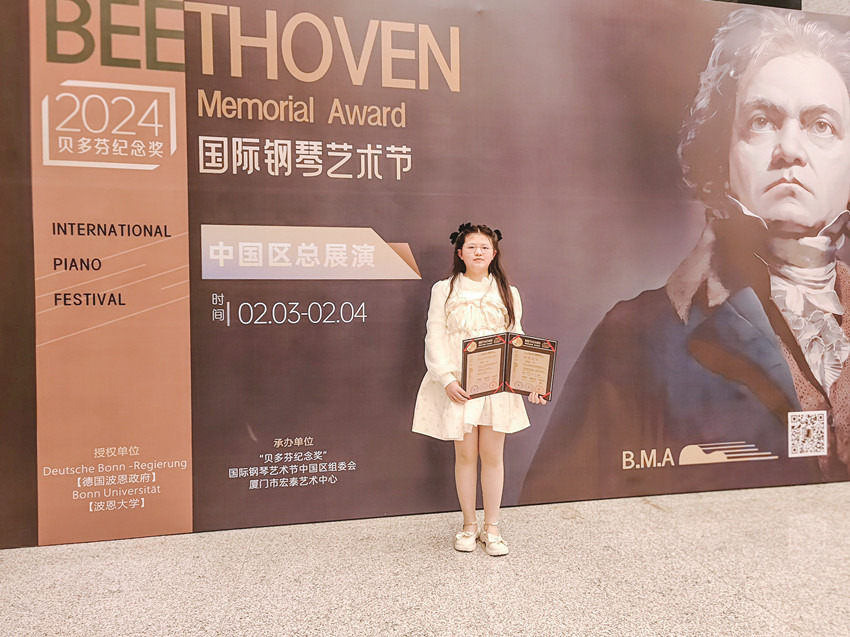 肖欣蕊在貝多芬國際鋼琴展演上獲獎。 受訪者供圖