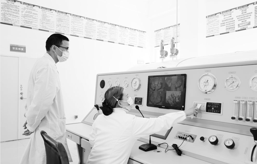 醫(yī)護(hù)人員在操控設(shè)備,同時(shí)全程密切關(guān)注艙內(nèi)情況。