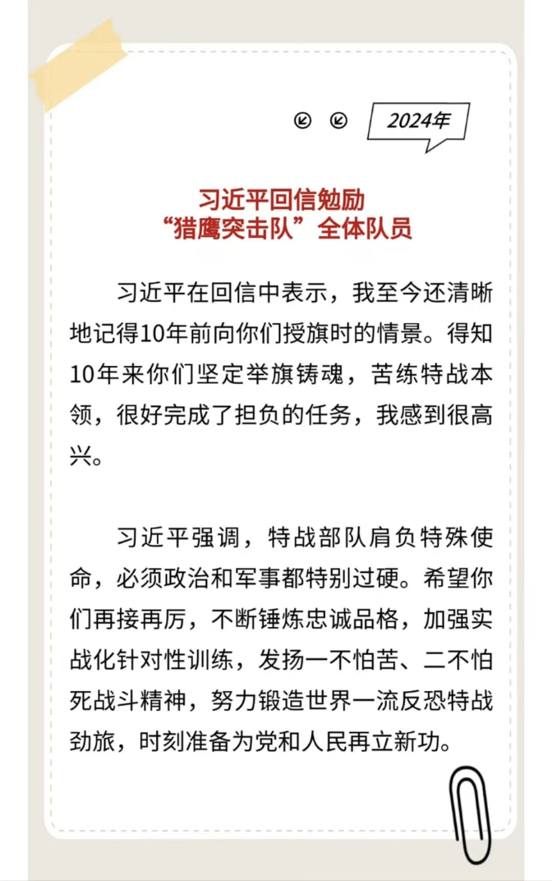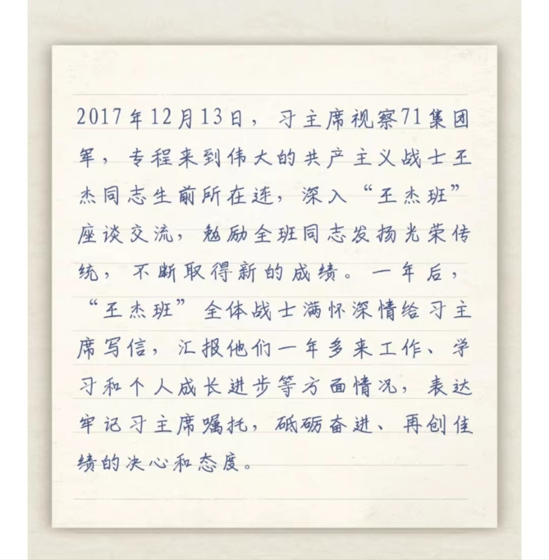 習(xí)主席給“強軍精武紅四連”全體官兵回信
