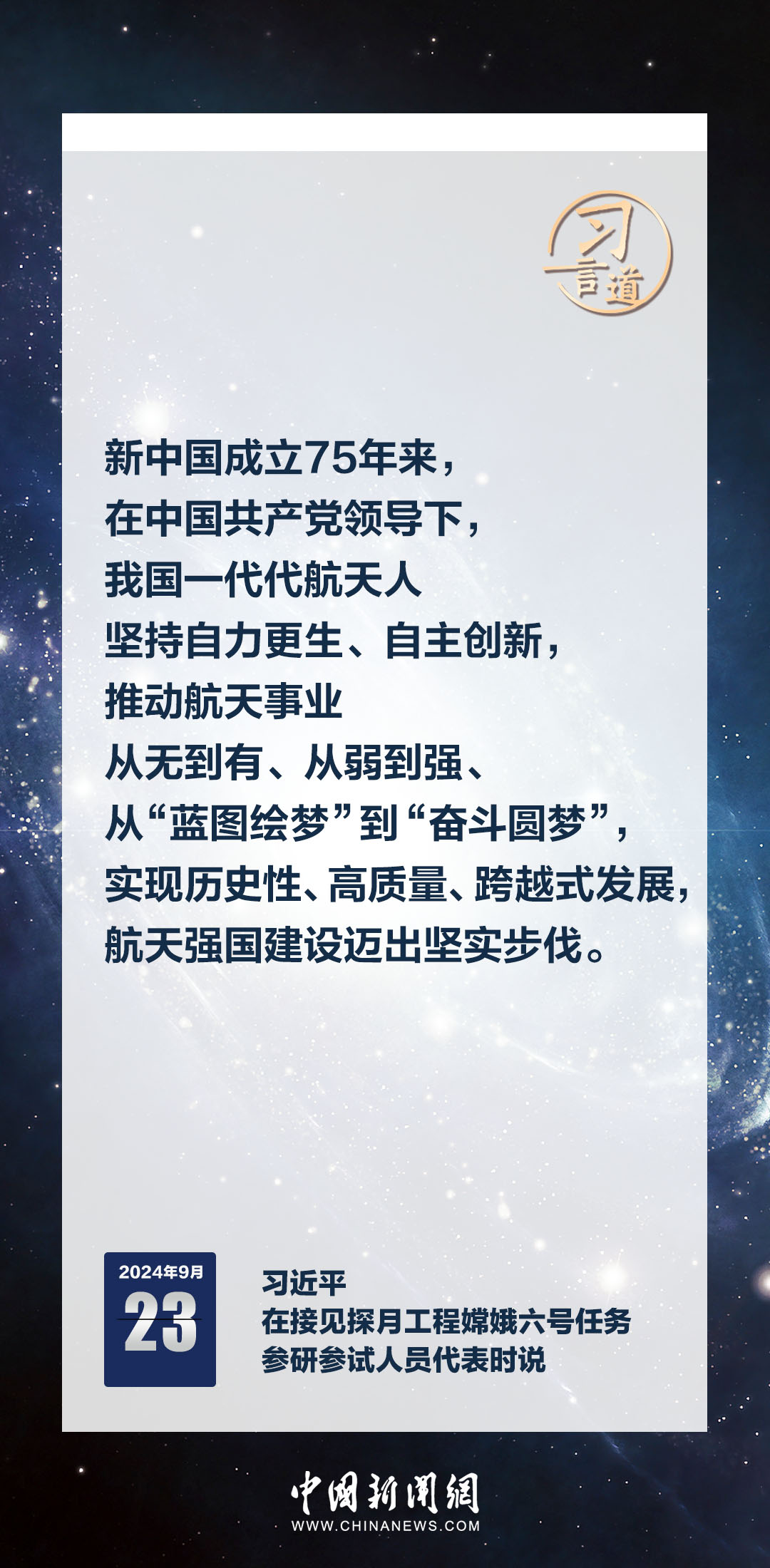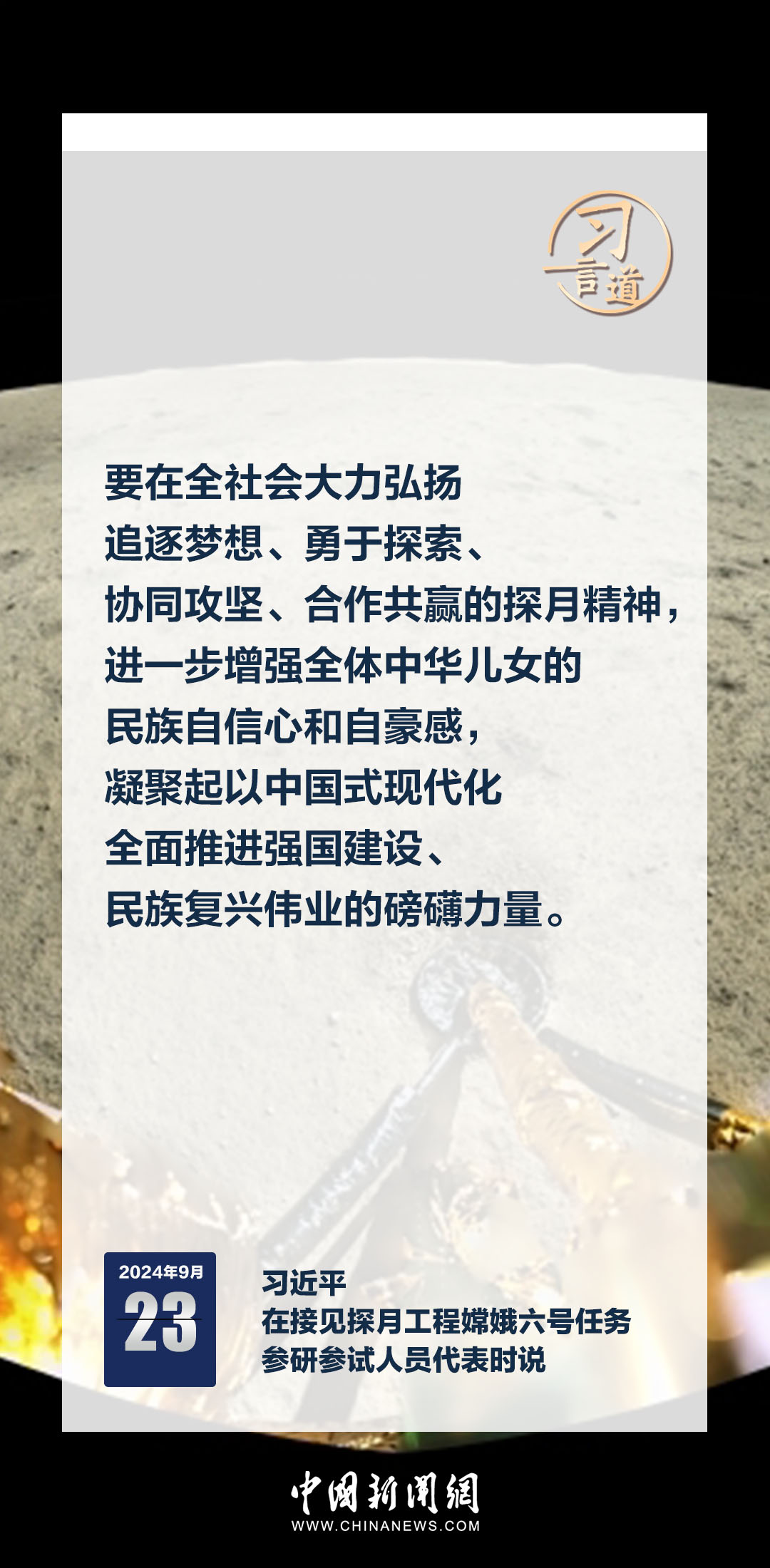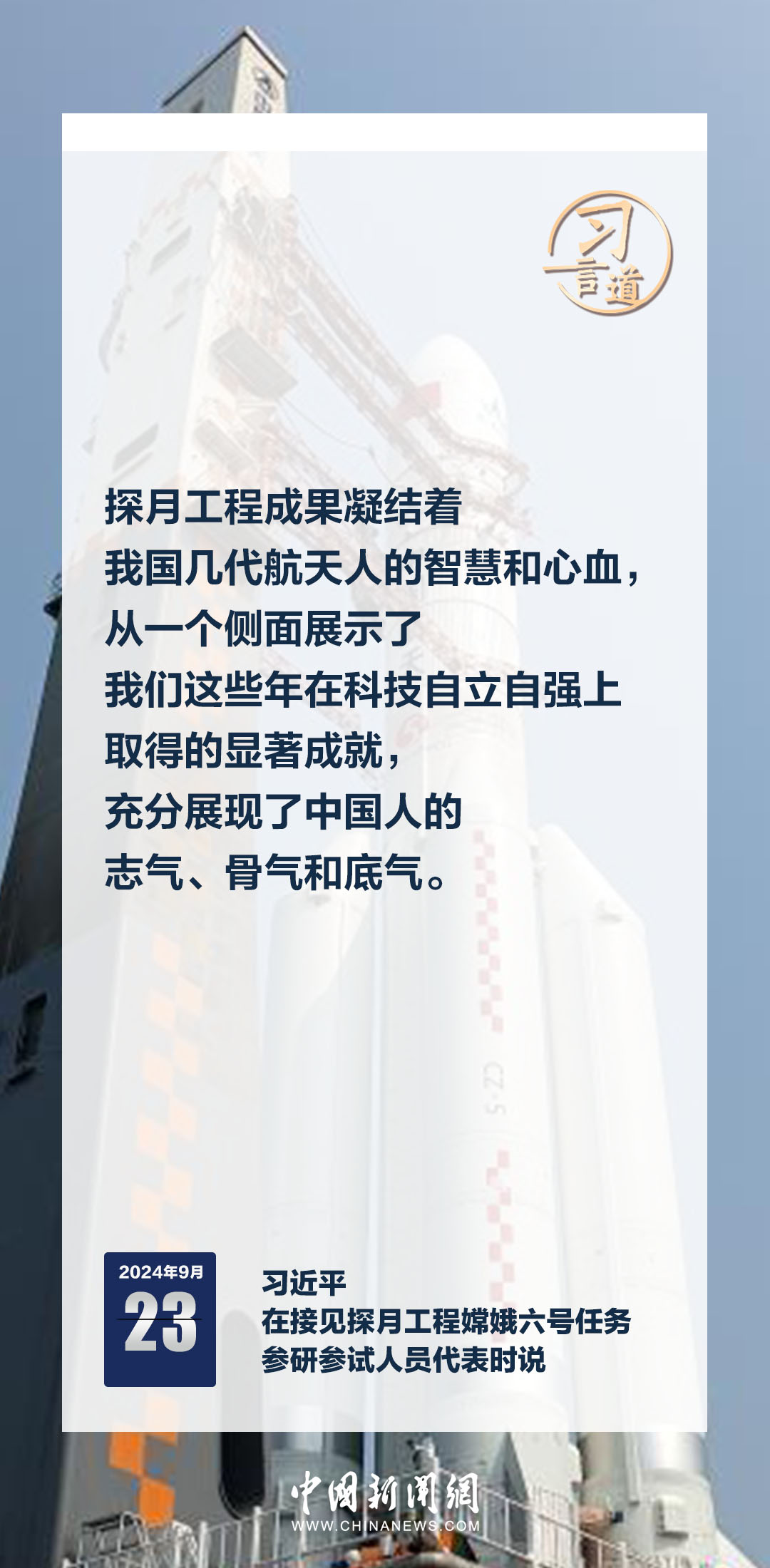 中共中央總書記、國家主席、中央軍委主席習近平23日在人民大會堂接見探月工程嫦娥六號任務(wù)參研參試人員代表時發(fā)表重要講話。習近平指出——