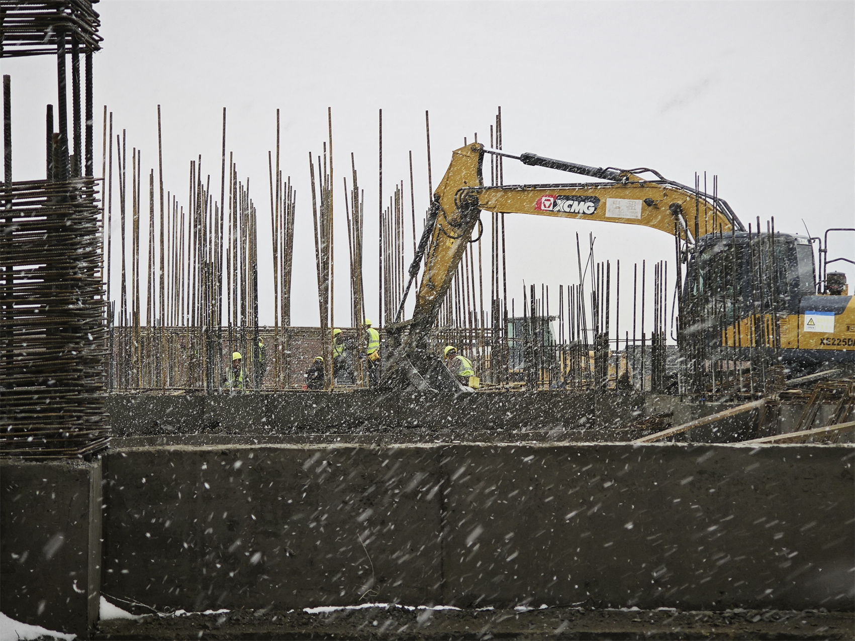 吳慶根和同事頂著風(fēng)雪,抱起一捆稻草、一卷泡沫走進工地。這處工地是正在建設(shè)的電站升壓站輔助用房,頭一天剛剛完成0米以上的首梁澆筑,現(xiàn)在最要緊的就是混凝土的養(yǎng)護?!皽囟茸铌P(guān)鍵?!眳菓c根介紹,在混凝土凝固過程中,溫度過高或過低都有可能造成凝固質(zhì)量不好,“今天氣溫特別低,要趕緊采取保暖措施?!?/span>