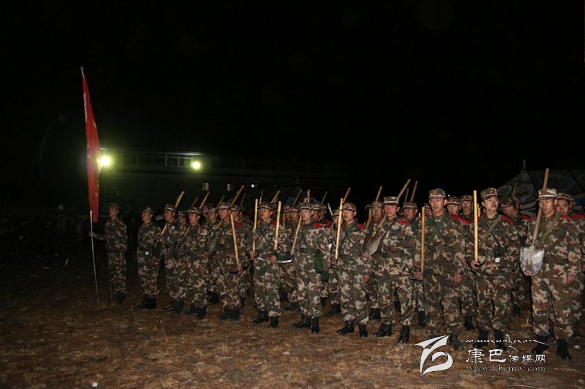 武警四川總隊第二支隊官兵趕到康定祖慶小學開展救援工作。
