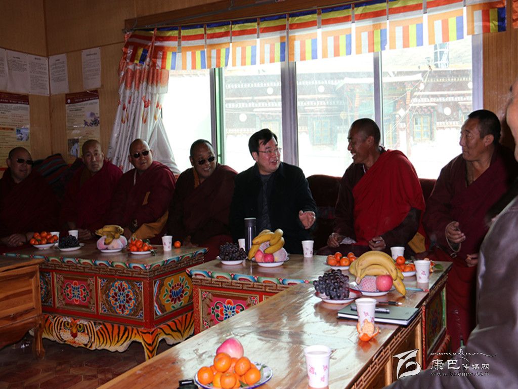 到達(dá)爐霍縣城已是中午兩點(diǎn),僅用十分鐘時(shí)間吃過(guò)午飯,胡昌升又立即趕往爐霍縣壽靈寺,看望同心同向活動(dòng)中結(jié)下深厚友誼的“老朋友”。每次到壽靈寺,胡昌升與寺管會(huì)成員都有說(shuō)不完的話,有聊不完的開(kāi)心事,新年就要到來(lái),大家你一言我一語(yǔ)祝福2015。英巴澤仁說(shuō),希望今年“五二三”學(xué)教活動(dòng)能開(kāi)展得更好。澤仁扎西說(shuō),黨的十八大提出的24字社會(huì)主義核心價(jià)值觀,字字說(shuō)在我們的心里,只要把這24字落到實(shí)處,偉大中國(guó)夢(mèng)就一定會(huì)實(shí)現(xiàn)。聽(tīng)完大家的發(fā)言,胡昌升十分高興,他說(shuō),希望2015年全州平安和諧、和和氣氣、和和美美、和和睦睦。