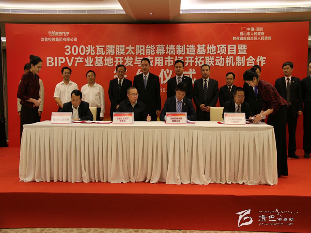 本網(wǎng)訊(記者 楊杰 文/圖)4月24日下午,由漢能控股集團(tuán)投資建設(shè)的300兆瓦薄膜太陽能幕墻制造基地項(xiàng)目暨BIPV產(chǎn)業(yè)基地開發(fā)與應(yīng)用市場(chǎng)開拓聯(lián)動(dòng)機(jī)制合作簽約儀式在成都錦江賓館舉行。