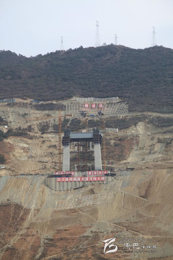 工地上煙塵滾滾,工程車輛來回穿梭。2月10日下午3時50分,記者在雅康高速公路瀘定大渡河特大橋施工現場看到,一臺臺挖掘機正在揮舞著巨臂,一輛輛載重汽車在運送著砂石。大渡河兩岸,巨大的塔吊在徐徐轉動,頂天立地般的橋臺正在長高。瀘定電站對面的山谷中,一條灰色的“巨龍”正在向前延伸。據記者此前得到的消息:春節(jié)期間,雅康高速公路施工全線不停工。記者在現場看到的情景,剛好印證了這一說法。據施工人員介紹,他們之所以選擇春節(jié)期間不停工,是希望通過自己的努力,盡快建成雅康高速公路,為藏區(qū)經濟社會發(fā)展盡一份力。