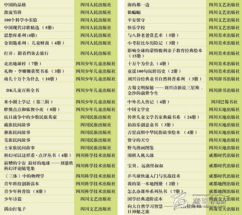2016年向全省青少年推薦50種川版優(yōu)秀出版物目錄