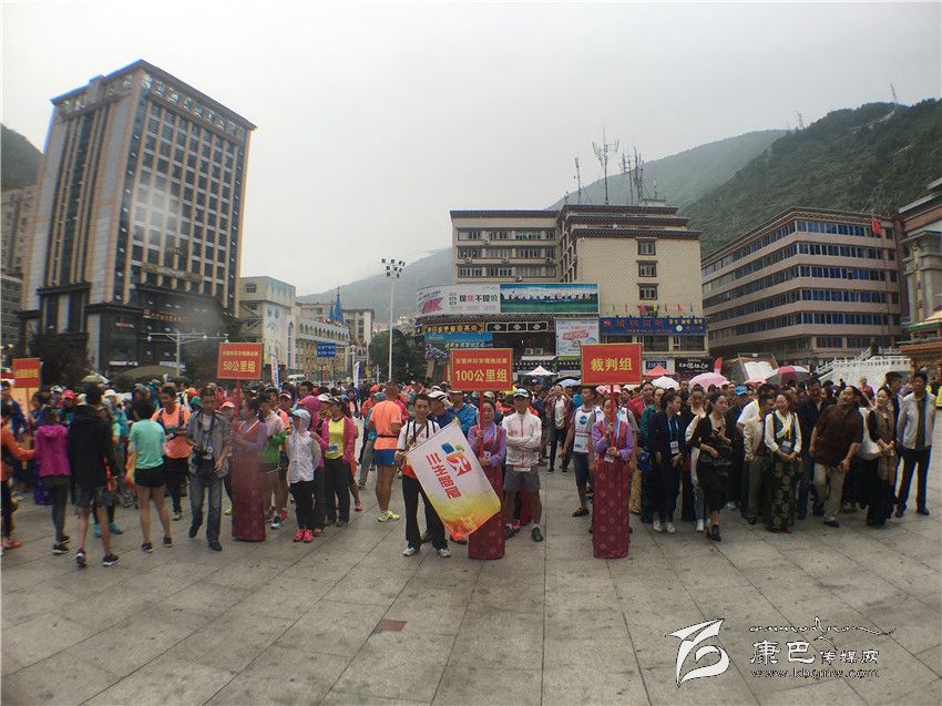 國家體育總局登山運動管理中心書記續(xù)川宣布2016中國·甘孜環(huán)貢嘎山百公里國際山地戶外運動挑戰(zhàn)賽暨全國徒步大會正式開賽,比賽在蒙蒙細雨中拉開帷幕。山地戶外運動越野賽的200名參賽選手從情歌廣場向跑馬山進發(fā),通過資格賽進入決賽的選手將于明日凌晨5時在康定情歌廣場參加此次挑戰(zhàn)賽正賽。