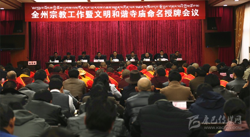 本網(wǎng)訊(記者 楊杰 文/圖)3月28日,全州宗教工作暨文明和諧寺廟命名授牌會議在康定召開。會議深入學習貫徹全國、全省宗教工作會議精神,深化對做好新形勢下宗教工作重大意義的認識,總結(jié)經(jīng)驗、查找不足、部署工作,提升全州宗教事務(wù)依法管理水平,引導(dǎo)宗教與社會主義社會相適應(yīng)。會議對2016年達標升級的文明和諧寺廟進行了命名授牌。州委書記劉成鳴出席會議并講話,州政協(xié)主席向秋出席會議。