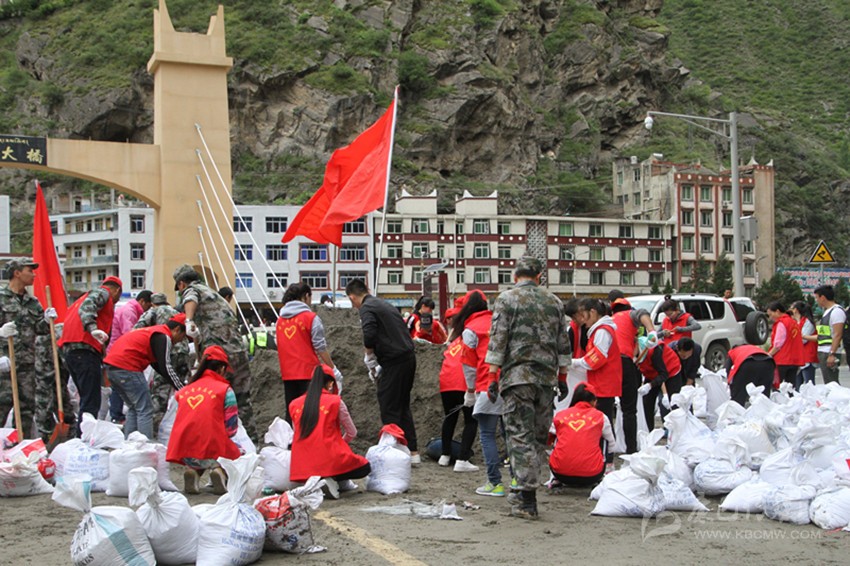 這樣無私付出、無畏向前的行為時時上演在丹巴抗洪搶險的每一處戰(zhàn)場上。他們有的站在洪流中指揮救災,額頭冒出大顆的汗珠;有的肩抗沙袋大步向前,腳下濺起的水花打濕了臉龐;有的連夜冒雨疏散群眾、指揮交通,來不及休息繼續(xù)堅守一線?!?/span>6·15”險情發(fā)生后,丹巴縣150名政法干警、武警官兵和縣級機關300多名45歲以下男性黨員、干部奔赴抗洪救災一線,累計裝填沙袋15000袋、綁捆鐵絲1噸、鐵絲網500個,發(fā)放救生衣500余件。