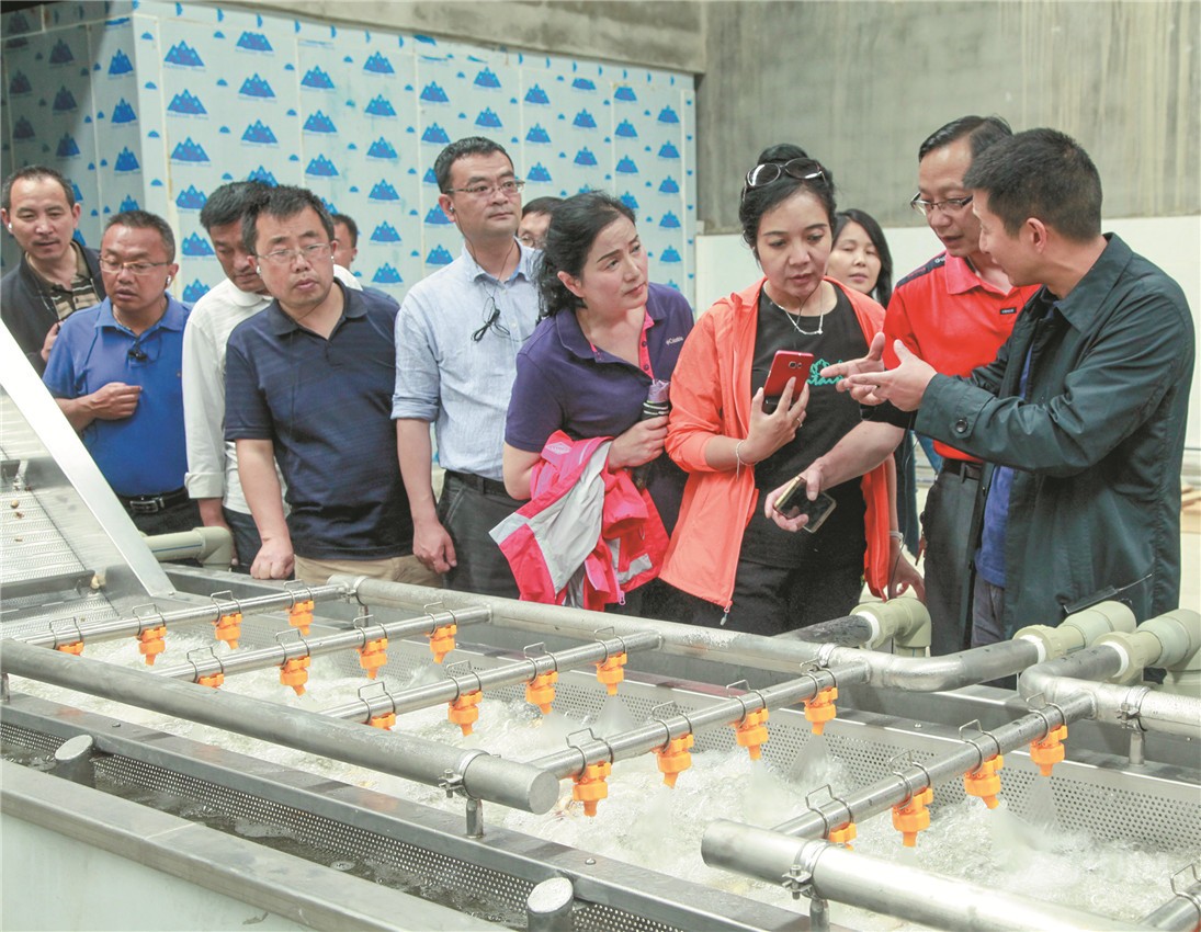 圖為現(xiàn)場會與會人員在雅江縣松茸產(chǎn)業(yè)園區(qū)學(xué)習(xí)參觀。