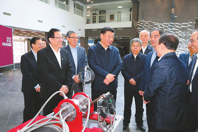 近年來,北京大學(xué)培養(yǎng)和匯聚了一批具有世界領(lǐng)先水平的科學(xué)家、科技領(lǐng)軍人才和創(chuàng)新團(tuán)隊(duì),科研綜合實(shí)力、原始創(chuàng)新能力顯著增強(qiáng)。在金光生命科學(xué)大樓一層大廳,展示了近年來北京大學(xué)在理科、工科、醫(yī)科等領(lǐng)域的科研成果。習(xí)近平認(rèn)真聽取關(guān)于學(xué)校學(xué)科建設(shè)、人才隊(duì)伍建設(shè)、科研創(chuàng)新能力提升等情況介紹,并仔細(xì)察看新一代干細(xì)胞技術(shù)、碳芯片技術(shù)、微型雙光子顯微成像系統(tǒng)等科研裝置和實(shí)物模型。習(xí)近平對(duì)大家說,看了你們的成果展示,我為你們感到驕傲。創(chuàng)新是引領(lǐng)發(fā)展的第一動(dòng)力,是國家綜合國力和核心競爭力的最關(guān)鍵因素。重大科技創(chuàng)新成果是國之重器、國之利器,必須牢牢掌握在自己手上,必須依靠自力更生、自主創(chuàng)新。在這個(gè)問題上,我們一定要保持清醒。要繼續(xù)深化科技體制改革,把人、財(cái)、物更多向科技創(chuàng)新一線傾斜,努力在關(guān)鍵共性技術(shù)、前沿引領(lǐng)技術(shù)、現(xiàn)代工程技術(shù)、顛覆性技術(shù)創(chuàng)新上取得更大突破,搶占科技創(chuàng)新制高點(diǎn)。高校是科技創(chuàng)新體系的重要組成部分,高校科研人員是我國科技創(chuàng)新的重要隊(duì)伍。要加強(qiáng)學(xué)科之間的協(xié)同創(chuàng)新,加強(qiáng)對(duì)交叉學(xué)科群和科技攻關(guān)團(tuán)隊(duì)的支持,培養(yǎng)造就更多具有國際水平的科技人才和創(chuàng)新團(tuán)隊(duì)。