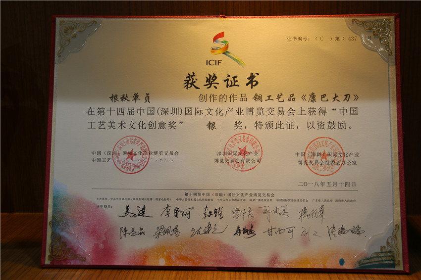 據(jù)了解,在本次深圳文博會上,我州參加十四屆深圳文博會參賽展品中有10件工藝品獲獎。其中,白玉縣董察文化公司參展作品首當(dāng)其沖獲得工藝美術(shù)文化創(chuàng)意金獎。爐霍縣珍馬文化藝術(shù)公司、爐霍縣華彩文化傳播有限公司、白玉縣河坡藏民族手工藝公司、新龍藥泥面具分別獲得工藝美術(shù)文化創(chuàng)意銀獎;德格縣多普溝噶瑪噶孜文化旅游公司、甘孜州郎卡杰唐卡有限公司、丹巴木版畫、康體書法、德格絳紅天堂文化旅游公司分別獲得工藝美術(shù)文化創(chuàng)意銅獎。同時,州文體廣新局和康巴文化研究院獲優(yōu)秀組織獎;甘孜州全境文化產(chǎn)業(yè)有限發(fā)展公司和康巴聚慧文化傳播有限公司獲得優(yōu)秀展示獎。其它參展商均獲得本屆文博會優(yōu)秀入圍獎。國家一級手工藝美術(shù)大師、爐霍縣華彩文化傳播有限公司馮建華:“這一次是我公司第一次在文博會上參展,就榮獲銀獎,這要感謝黨委政府和文化部門提供的平臺。相信在此基礎(chǔ)上狠下功夫,越做越好,將陶瓷藝術(shù)與唐卡藝術(shù)很好的發(fā)揚光大?!?br/> “深圳文博會組委會對參展優(yōu)秀單位、優(yōu)秀個人及產(chǎn)品進行表彰,我州在設(shè)置的全部獎項中均有收獲,獲獎數(shù)量在全國地市級參展單位中名列前茅,成為全省獲得獎項最多的市州,因此在本屆文博會上反響強烈,完全達到了既定目標?!笨蛋臀幕芯吭贺撠?zé)人牛麥青云說,能榮獲這樣的成績,都是在本屆文博會組委會的大力支持和幫助下,在省委、省政府和州委、州政府、州委宣傳部、州文體廣新局的關(guān)心和全力支持和指導(dǎo)下,并在各參展商家的積極配合下所取得的。下步作為文化系統(tǒng),將以供給側(cè)改革引領(lǐng)文化消費,弘揚我州傳統(tǒng)民族文化,推動全州非遺文化產(chǎn)品更上一層樓作出努力。
