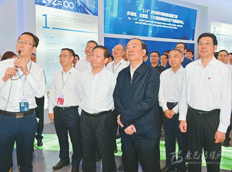 9月19日,中共中央政治局委員、中宣部部長(zhǎng)黃坤明等參觀(guān)網(wǎng)絡(luò)安全博覽會(huì)。 川報(bào)記者 歐陽(yáng)杰 攝