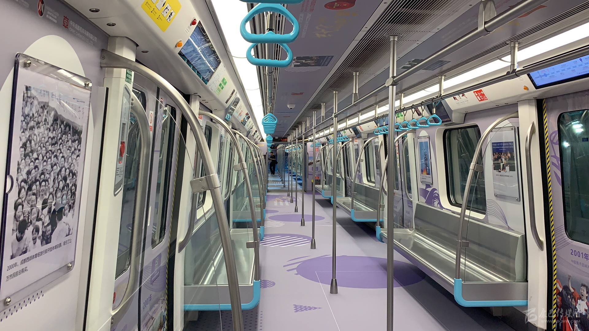 為慶祝中華人民共和國成立70周年,9月18日,“流動博物館”號主題列車在成都地鐵7號線(環(huán)線)正式上線?!傲鲃硬┪镳^”以精心挑選的老照片、文物復(fù)印件和全新原創(chuàng)愛國歌曲伴隨乘客回顧新中國70年光輝歲月,見證新中國70年來的歷史巨變。