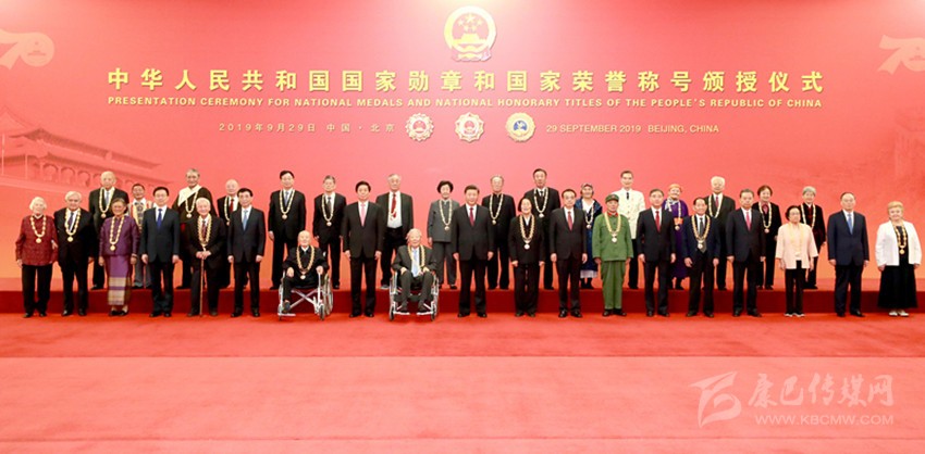 9月29日,中華人民共和國(guó)國(guó)家勛章和國(guó)家榮譽(yù)稱號(hào)頒授儀式在北京人民大會(huì)堂金色大廳隆重舉行。中共中央總書記、國(guó)家主席、中央軍委主席習(xí)近平向國(guó)家勛章和國(guó)家榮譽(yù)稱號(hào)獲得者頒授勛章獎(jiǎng)?wù)虏l(fā)表重要講話。 新華社記者 鞠鵬 攝