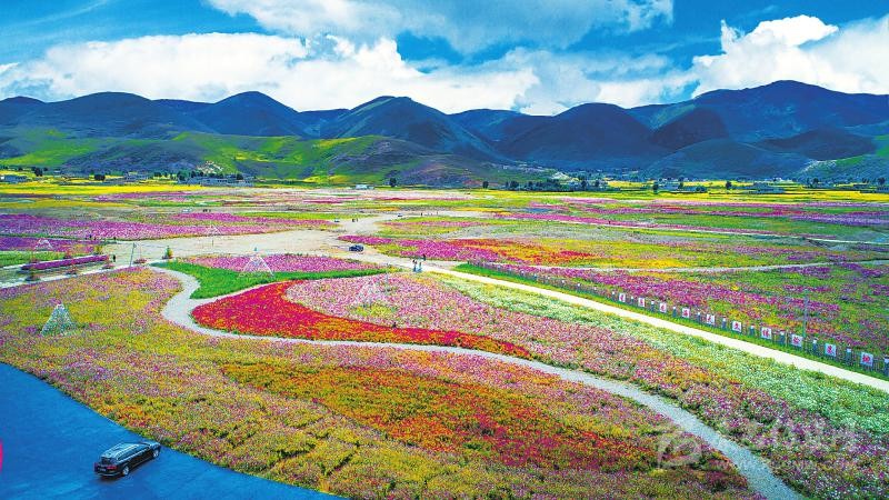 2018年9月,距甘孜州稻城縣城7公里的色拉鄉(xiāng)八美村山谷,1500余畝格桑花開成壯美“花?!?。而這里以前曾經(jīng)是沙化嚴(yán)重的低效益牧場(chǎng)。