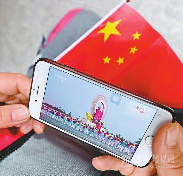 群眾在手機(jī)上收看慶祝大會(huì)。川報(bào)記者何海洋攝
