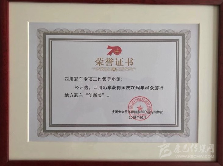 本網(wǎng)訊(楊藝茂)10月9日,記者從省文化和旅游廳獲悉,經(jīng)慶祝大會服務(wù)保障和群眾游行指揮部評選,四川彩車專項(xiàng)工作領(lǐng)導(dǎo)小組榮獲國慶70周年群眾游行地方彩車“創(chuàng)新獎”。