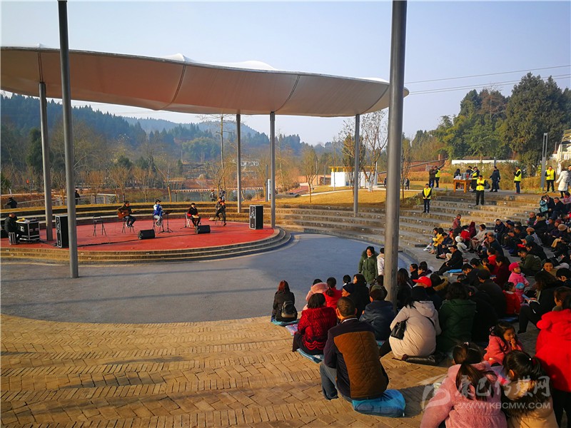 “遠(yuǎn)處的東山俯望著平靜的旌湖水,它流淌著,帶走了年輕的歲月……這就是我的家德陽,遠(yuǎn)方的人回來吧!”1月19日上午,在旌陽區(qū)東湖街道高槐村里傳來動聽的民謠。遠(yuǎn)遠(yuǎn)看去,村民們圍坐在“田野秀場”正聽著樂隊(duì)歌唱,不時還跟著音樂打著拍子。