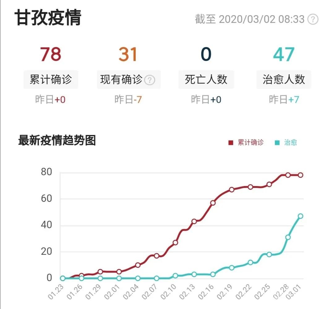 縣(市) 累計病例 新增病例 道孚縣 73 0 康定市 2 0 色達縣 2 0 稻城縣 1 0