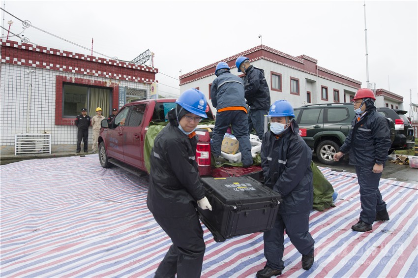 獲知“災(zāi)情”的第一時間, 國網(wǎng)四川省電力公司馬上發(fā)布集結(jié)準(zhǔn)備信息,聯(lián)系國網(wǎng)陜西省電力公司、重慶市電力公司進(jìn)行應(yīng)急聯(lián)動支援。國網(wǎng)甘孜供電公司立即啟動應(yīng)急預(yù)案迅速響應(yīng),對災(zāi)害進(jìn)行先期處置。來自陜西、重慶和四川應(yīng)急中心、信通公司、自貢公司、遂寧公司、眉山公司、電力醫(yī)院等6家基層單位的11支應(yīng)急隊(duì)伍全副武裝,攜帶工器具和應(yīng)急救援物資,在蒲江集結(jié)后,頂風(fēng)冒雨,遠(yuǎn)距離奔襲7小時抵達(dá)“災(zāi)區(qū)”。