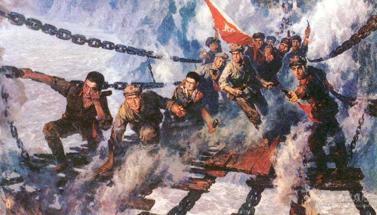 “金沙水拍云崖暖,大渡橋橫鐵索寒?!?5年前,在前有大渡河天險、后有國民黨追兵的危急時刻,22位勇士臨危受命組成突擊隊(duì),冒著迎面射來的彈雨,以強(qiáng)攻手段飛奪瀘定橋,打通了紅軍北上的道路。