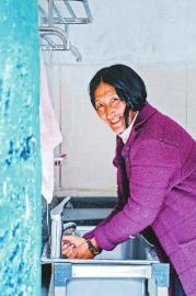 通過參加學習班,不少村民養(yǎng)成了好習慣。圖為9月13日,卡娘村一位村民正在洗手?! ∷拇ㄔ诰€記者楊樹攝