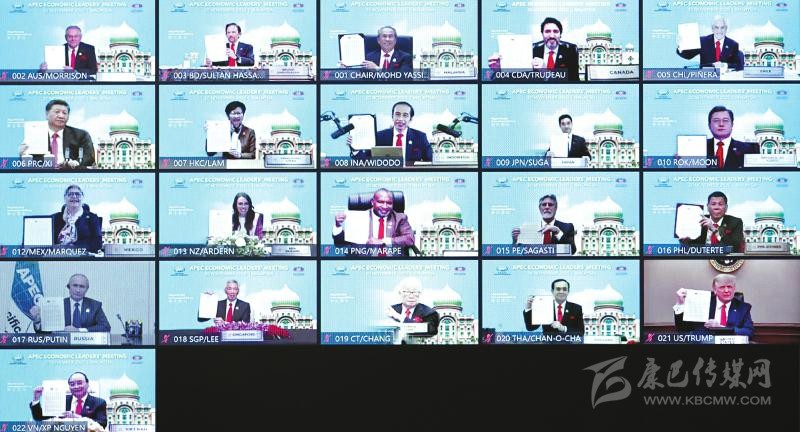 這是與會各經(jīng)濟體領(lǐng)導(dǎo)人、代表通過《2040年亞太經(jīng)合組織布特拉加亞愿景》并線上合影。新華社記者 李響 攝