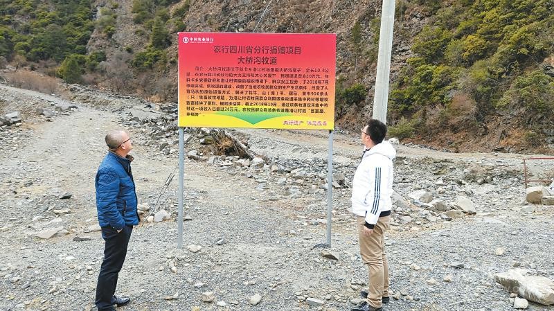 幫扶貧困戶,農(nóng)行四川分行沖鋒在前,捐建稻城蔬菜大棚、捐建九龍大橋溝牧道,發(fā)生自然災害時挺身而出?!按髽驕夏恋来蛲税傩罩赂槐伎抵?,我們通過農(nóng)行援建的牧道放牧、上山采藥,不用擔心雨雪天路滑了。感謝農(nóng)行四川分行的愛心幫助!”洛讓村村支書王洛布扎西逢人便說。