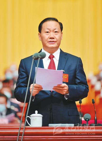 在熱烈的掌聲中,代省長黃強代表省人民政府作工作報告。報告由三部分組成:2020年工作回顧和“十三五”發(fā)展主要成就;“十四五”規(guī)劃和2035年遠景目標的總體考慮;2021年工作安排。