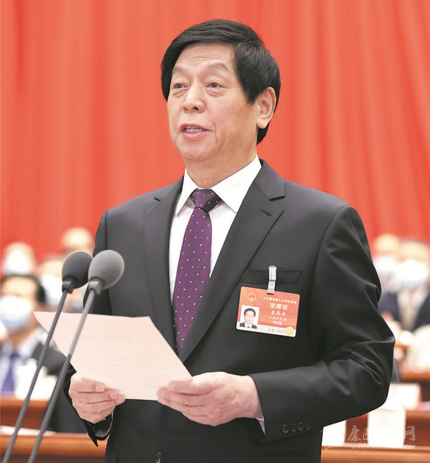 大會主席團常務主席、執(zhí)行主席栗戰(zhàn)書主持大會。新華社 發(fā)