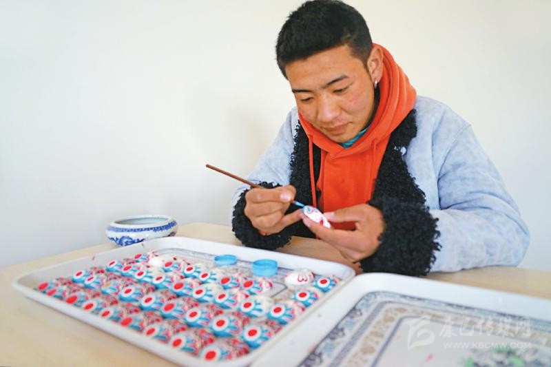 本著自主自愿的原則,教學(xué)班結(jié)束后,65名藏族青年主動(dòng)加入扶貧彩繪實(shí)訓(xùn)班,成為項(xiàng)目的第一批學(xué)員。“實(shí)訓(xùn)期間不需要交任何費(fèi)用,還包吃住。我對(duì)畫京劇臉譜很有興趣,我們第一個(gè)月學(xué)習(xí)繪畫基本功,第二個(gè)月開始,根據(jù)成品質(zhì)量,就可以計(jì)件得酬勞,學(xué)習(xí)期間我每月能掙500多元?!壁雠f。