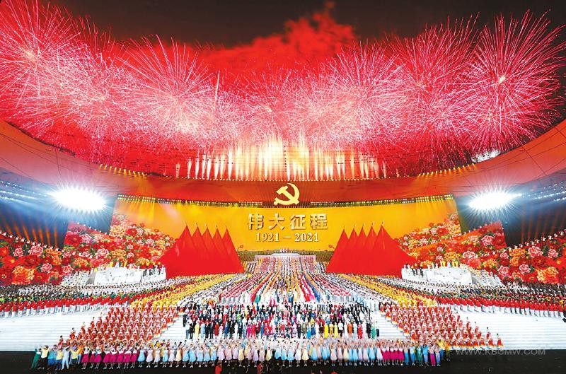 6月28日晚,北京,國家體育場燈光璀璨、人聲鼎沸。習近平等黨和國家領(lǐng)導人同約2萬名觀眾一起觀看文藝演出《偉大征程》,共同慶祝中國共產(chǎn)黨成立100周年。
