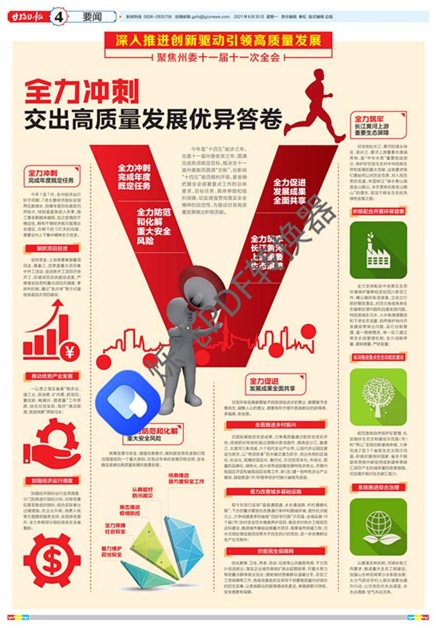 全會強調(diào),當前和今后一個時期,全州上下要把深入學習宣傳貫徹黨的十九屆五中全會、中央第七次西藏工作座談會、中央民族工作會議、省委十一屆九次全會和州委十一屆十一次全會精神作為一項重要政治任務(wù),圍繞建成川西北生態(tài)示范區(qū)綠色發(fā)展科技支撐體系,進一步發(fā)揮政策激勵作用、優(yōu)化創(chuàng)新管理服務(wù)、壓緊壓實工作責任,全力推動創(chuàng)新發(fā)展成勢見效。要全力沖刺完成年度既定任務(wù),狠抓項目投資,加強經(jīng)濟運行調(diào)度,加快推動優(yōu)勢產(chǎn)業(yè)發(fā)展;全力防范和化解重大安全風險,常態(tài)推進疫情防控,統(tǒng)籌推進各方面安全工作,全力促進發(fā)展成果全民共享,織密民生保障網(wǎng);筑牢長江黃河上游重要生態(tài)屏障,堅定不移走生態(tài)優(yōu)先綠色發(fā)展之路。
