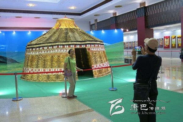 本網(wǎng)訊 (記者 周華 陳楊 秦松 文/圖)6月7日,在四川甘孜藏區(qū)精品文物主題展區(qū),州博物館副館長潘敏的聲音都有些沙啞了,這是因?yàn)橹v解時說話過多造成的。潘敏告訴記者,一次性組織200余件珍貴文物到首都展出,在我州還是第一次。這些文物中就包括明成祖永樂十一年封誥、明宣宗宣德元年四月十八日誥命和有300多年歷史的、全球唯一的一頂“百虎”帳篷,這三件珍品均是首次在省外現(xiàn)身。