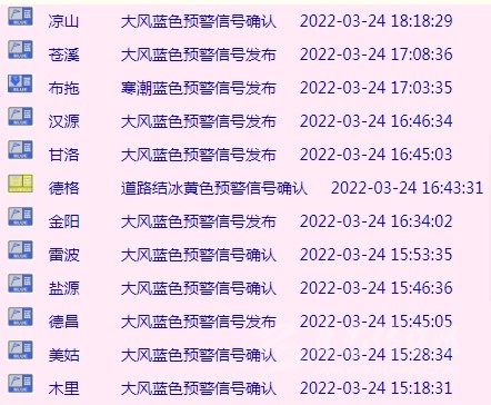 24小時(shí)內(nèi),四川多地大風(fēng)藍(lán)色預(yù)警信號(hào)生效中↘
